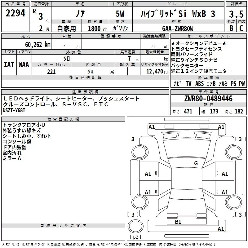 Toyota NOAH с аукциона Японии TAA Kinki лот № 2294