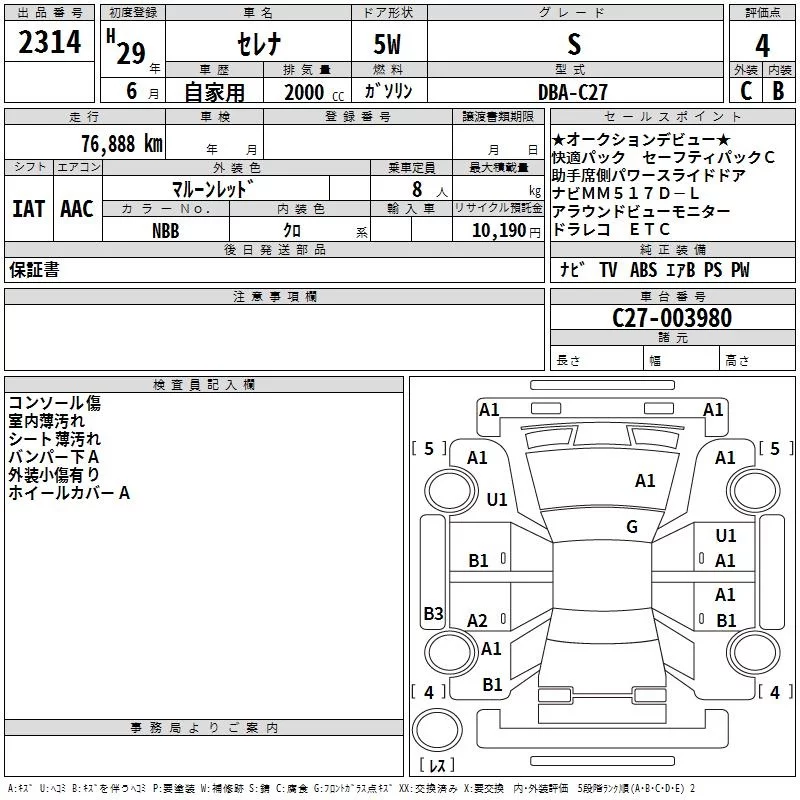 Nissan SERENA с аукциона Японии TAA Kinki лот № 2314