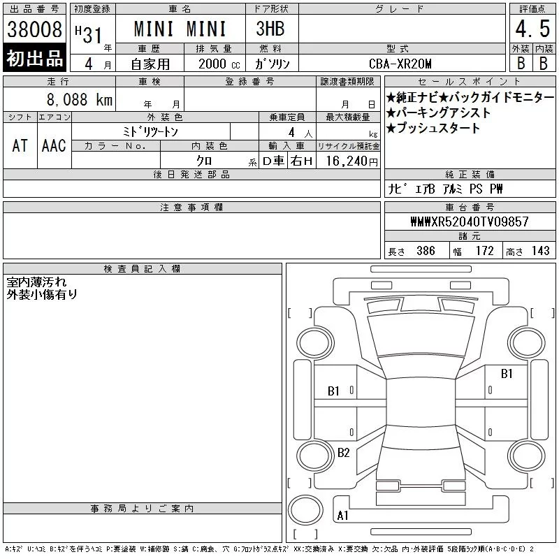 BMW MINI с аукциона Японии CAA Chubu лот № 38008
