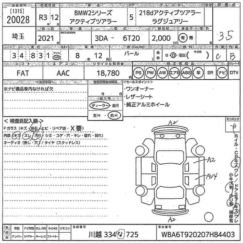 BMW 2-Series с аукциона Японии MIRIVE Saitama лот № 20028
