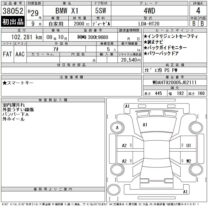 BMW X1 с аукциона Японии CAA Chubu лот № 38052