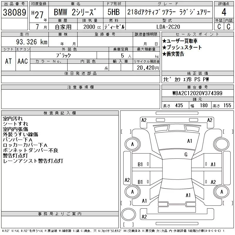BMW 2-Series с аукциона Японии CAA Chubu лот № 38089