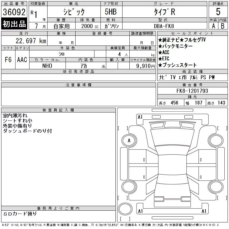 Honda CIVIC с аукциона Японии CAA Chubu лот № 36092