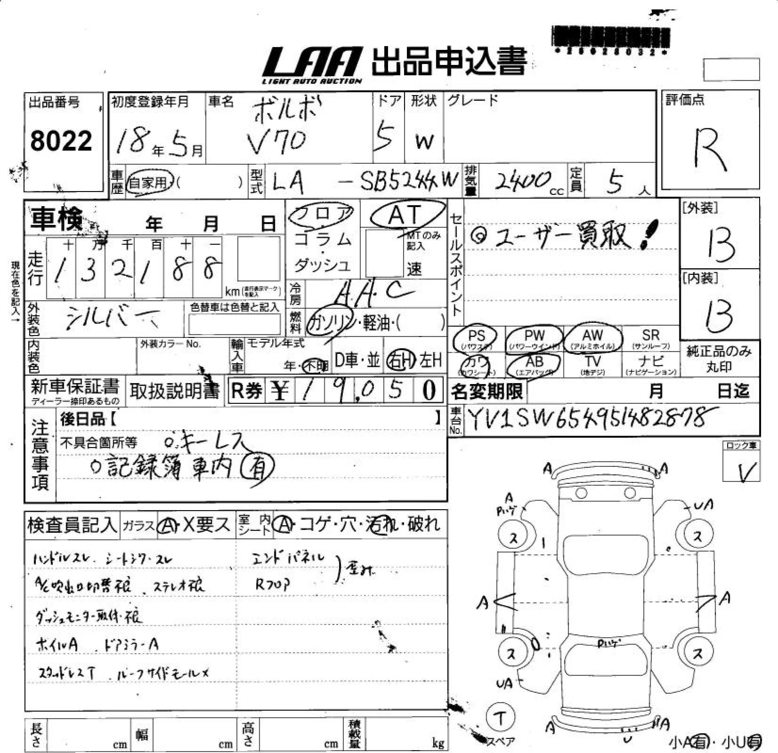Volvo V70 с аукциона Японии LAA Shikoku лот № 8022