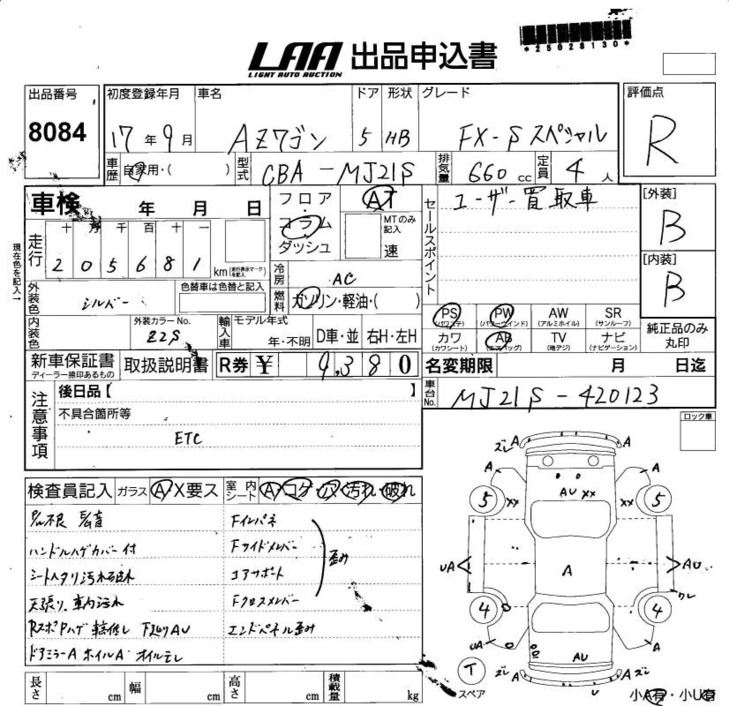 Mazda AZ WAGON с аукциона Японии LAA Shikoku лот № 8084