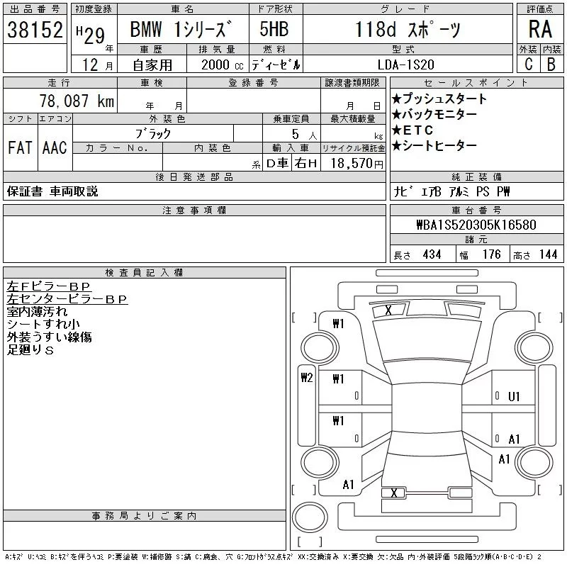 BMW 1-Series с аукциона Японии CAA Chubu лот № 38152