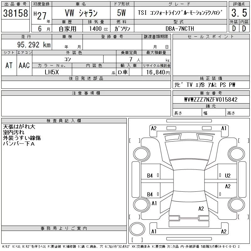 Volkswagen SHARAN с аукциона Японии CAA Chubu лот № 38158