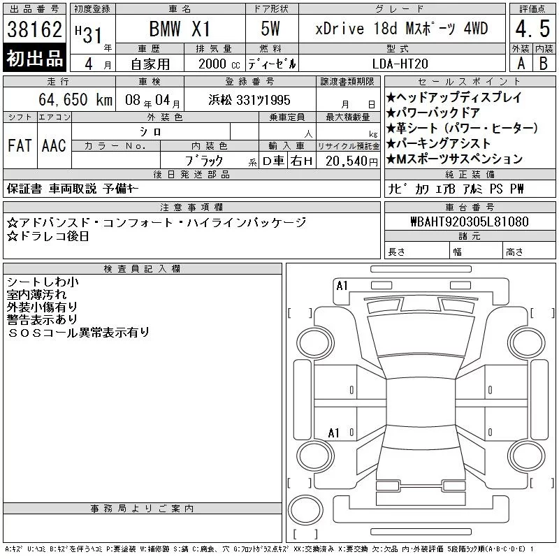 BMW X1 с аукциона Японии CAA Chubu лот № 38162