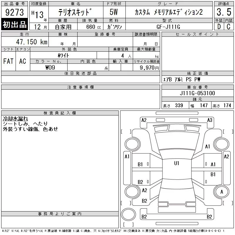 Daihatsu TERIOS KID с аукциона Японии CAA Chubu лот № 9273