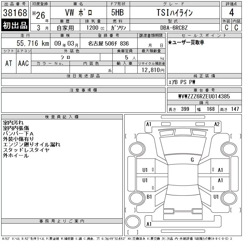 Volkswagen POLO с аукциона Японии CAA Chubu лот № 38168