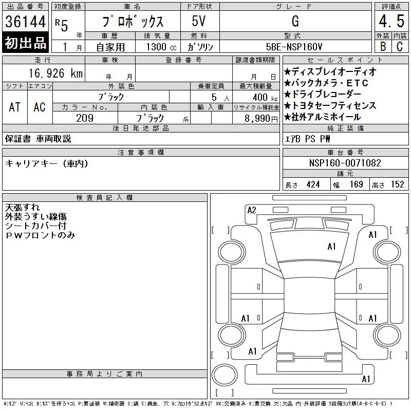 Toyota PROBOX с аукциона Японии CAA Chubu лот № 36144