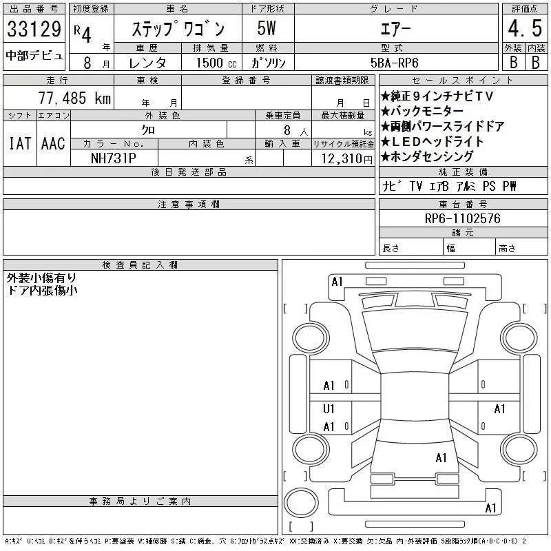 Honda STEP WAGON с аукциона Японии CAA Chubu лот № 33129