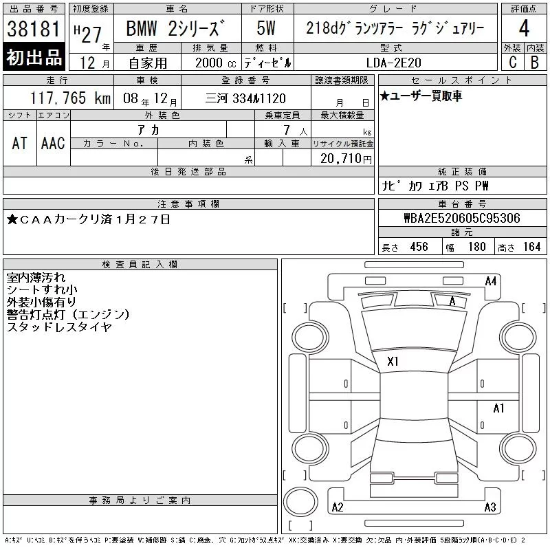 BMW 2-Series с аукциона Японии CAA Chubu лот № 38181