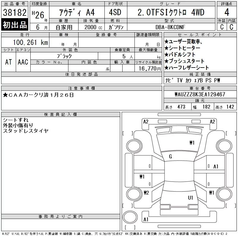 Audi A4 с аукциона Японии CAA Chubu лот № 38182