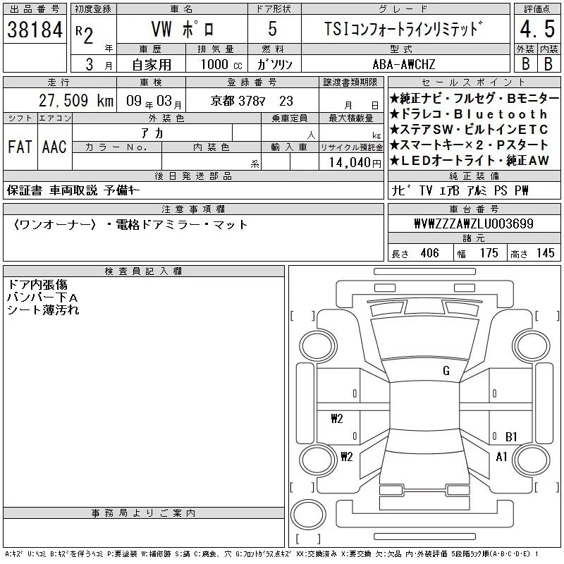 Volkswagen POLO с аукциона Японии CAA Chubu лот № 38184