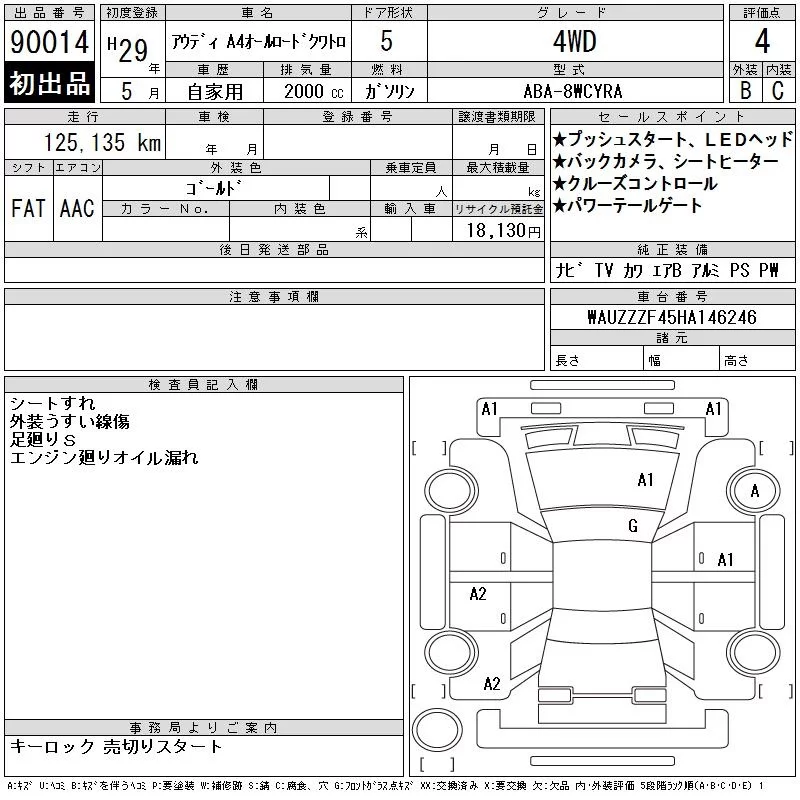 Audi A4 с аукциона Японии CAA Chubu лот № 90014