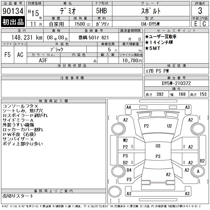 Mazda DEMIO с аукциона Японии CAA Chubu лот № 90134