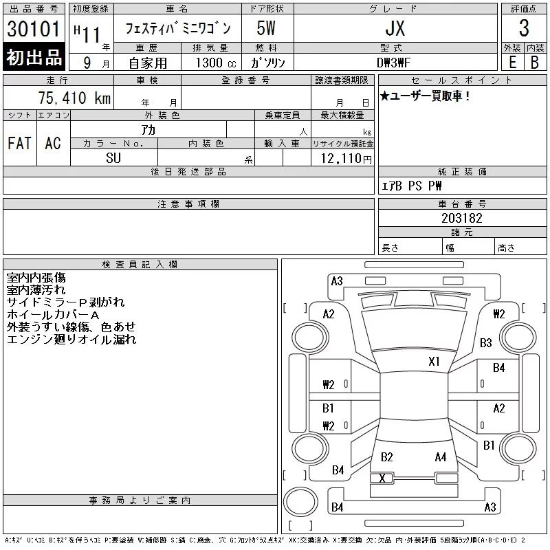 Ford FESTIVA MINI WAGON с аукциона Японии CAA Chubu лот № 30101