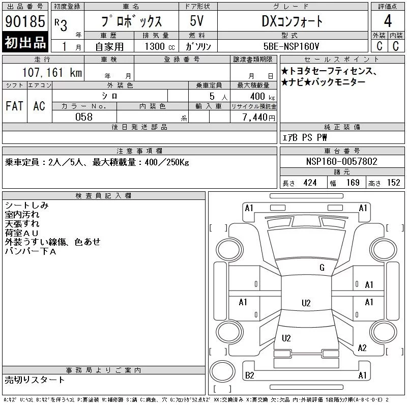 Toyota PROBOX с аукциона Японии CAA Chubu лот № 90185