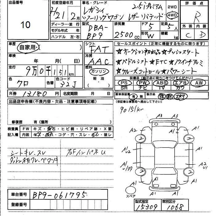 Subaru LEGACY с аукциона Японии JU Kumamoto лот № 10
