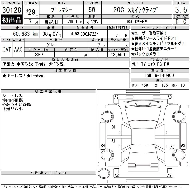 Mazda PREMACY с аукциона Японии CAA Chubu лот № 30128
