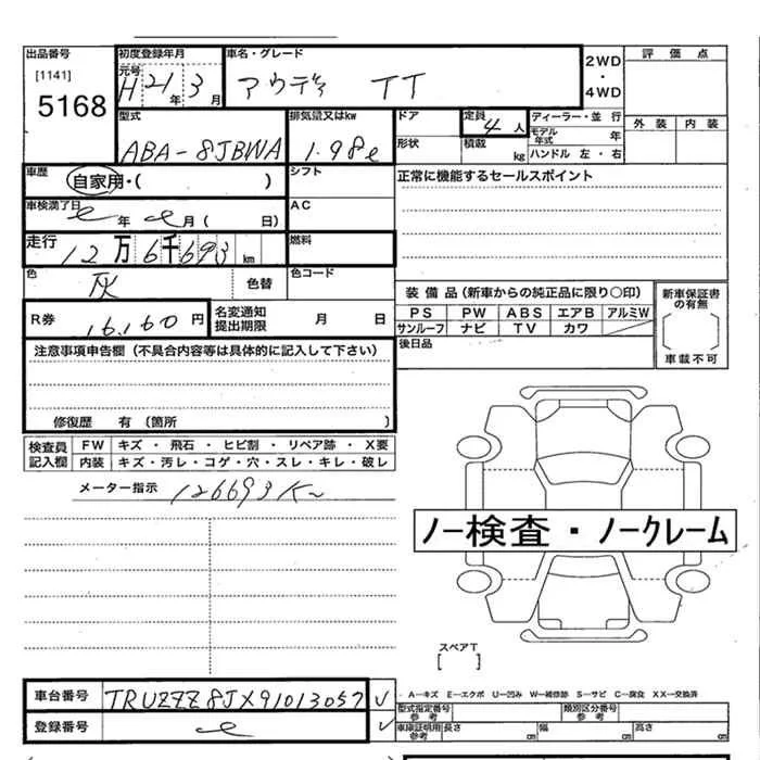 Audi TT с аукциона Японии JU Oita лот № 5168