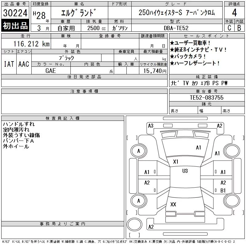 Nissan ELGRAND с аукциона Японии CAA Chubu лот № 30224