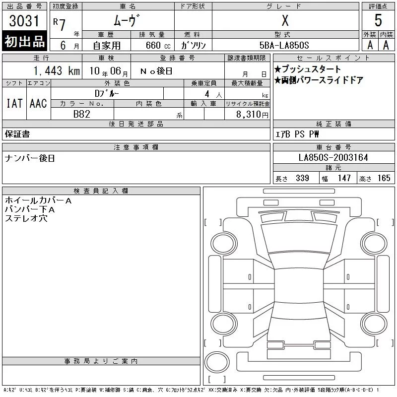 Daihatsu MOVE с аукциона Японии CAA Chubu лот № 3031