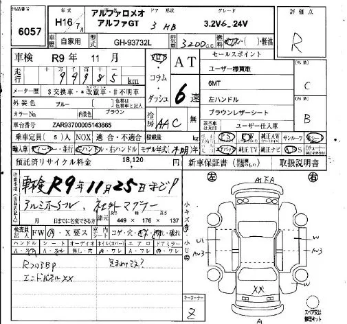 Alfa Romeo GT с аукциона Японии IAA Osaka лот № 6057
