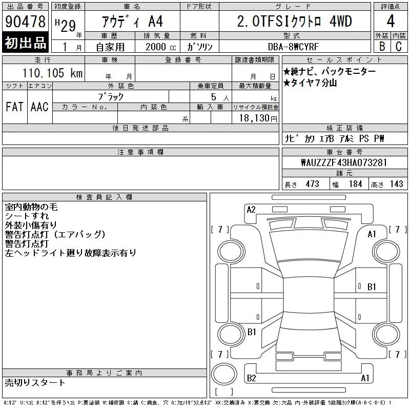 Audi A4 с аукциона Японии CAA Chubu лот № 90478