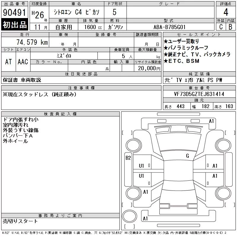 Citroen C4 с аукциона Японии CAA Chubu лот № 90491