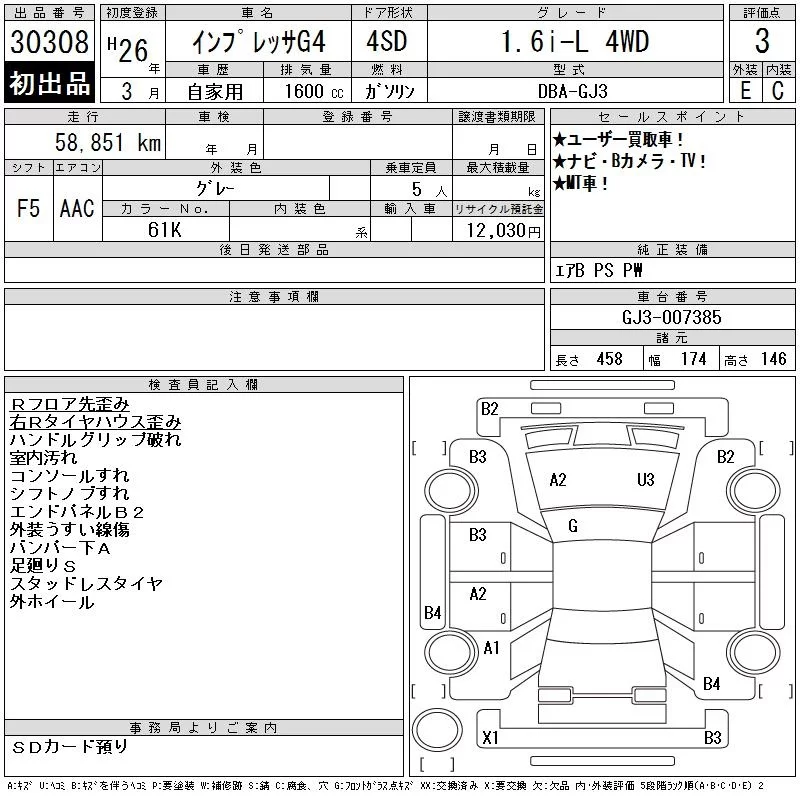 Subaru IMPREZA G4 с аукциона Японии CAA Chubu лот № 30308