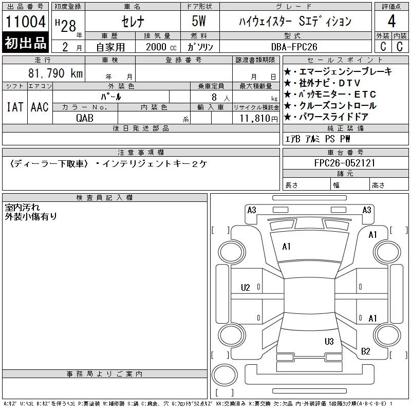 Nissan SERENA с аукциона Японии CAA Chubu лот № 11004