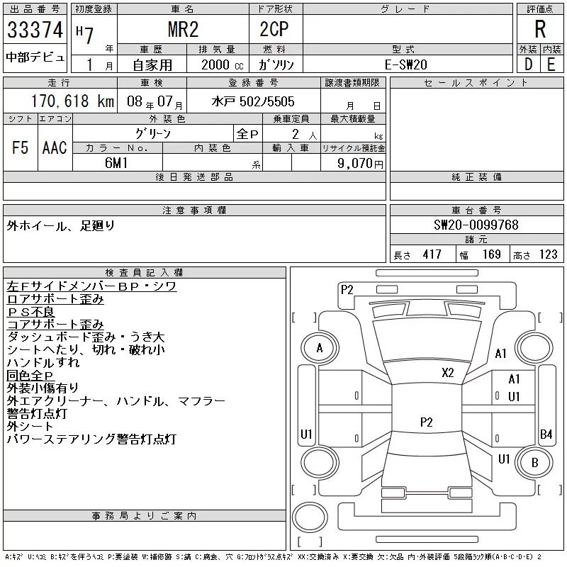 Toyota MR2 с аукциона Японии CAA Chubu лот № 33374