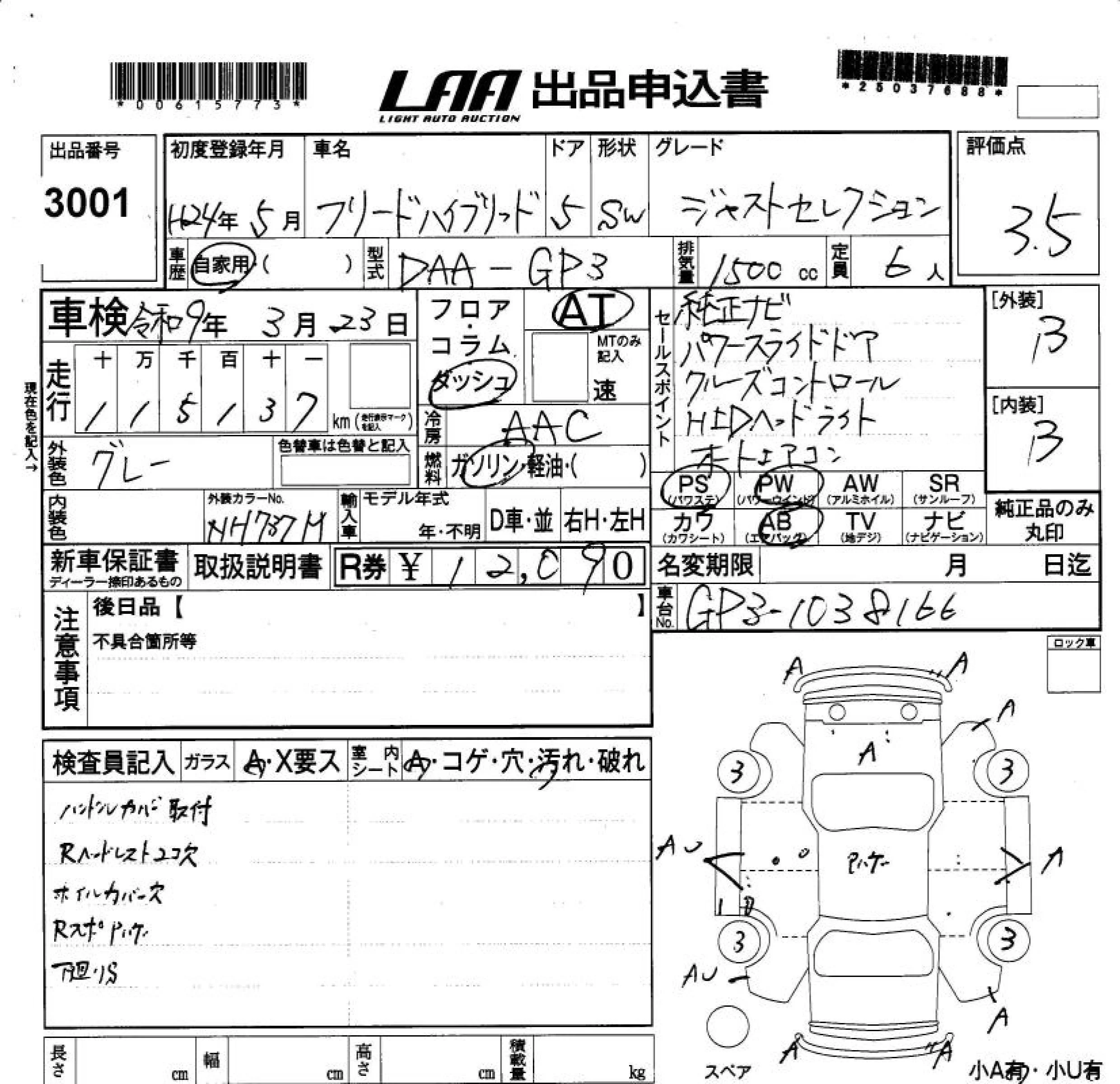Honda FREED с аукциона Японии LAA Shikoku лот № 3001