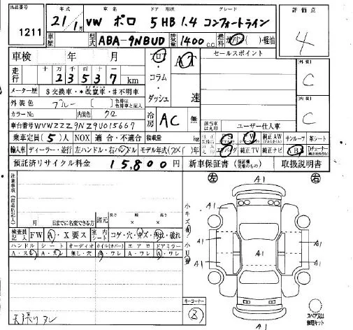Volkswagen POLO с аукциона Японии IAA Osaka лот № 1211