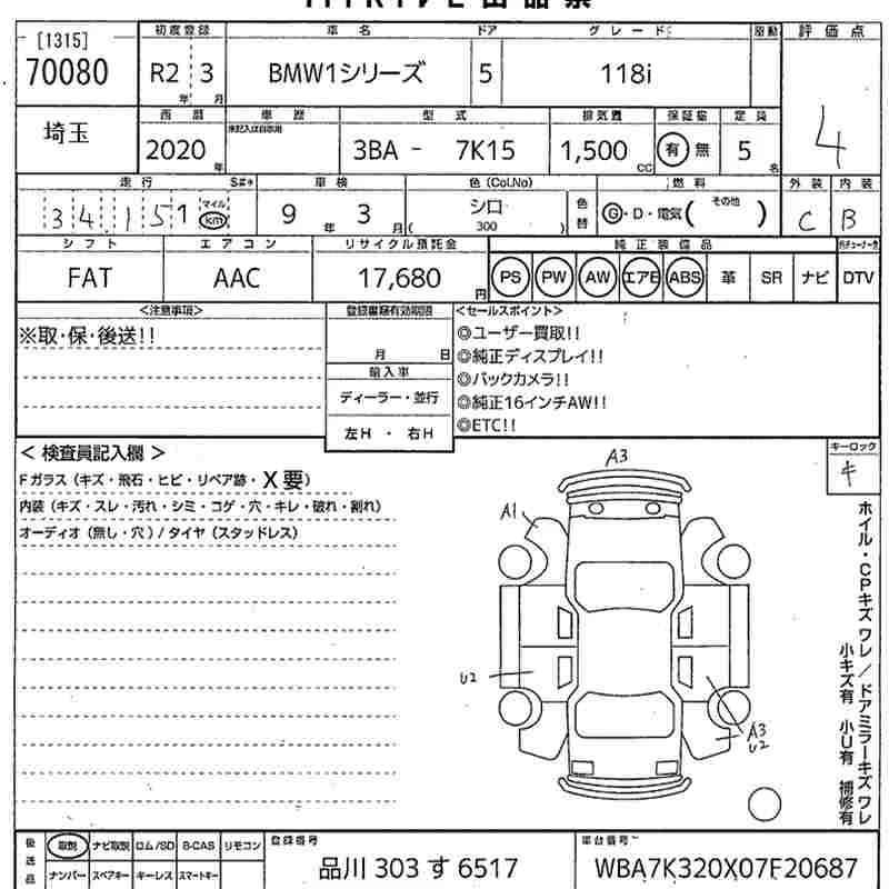 BMW 1-Series с аукциона Японии MIRIVE Saitama лот № 70080