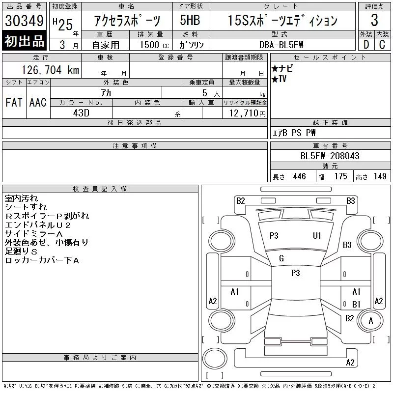 Mazda AXELA с аукциона Японии CAA Chubu лот № 30349