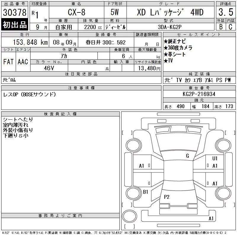 Mazda CX-8 с аукциона Японии CAA Chubu лот № 30378