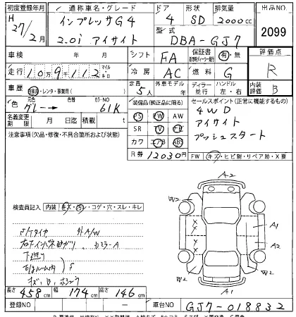 Subaru IMPREZA G4 с аукциона Японии HERO лот № 2099