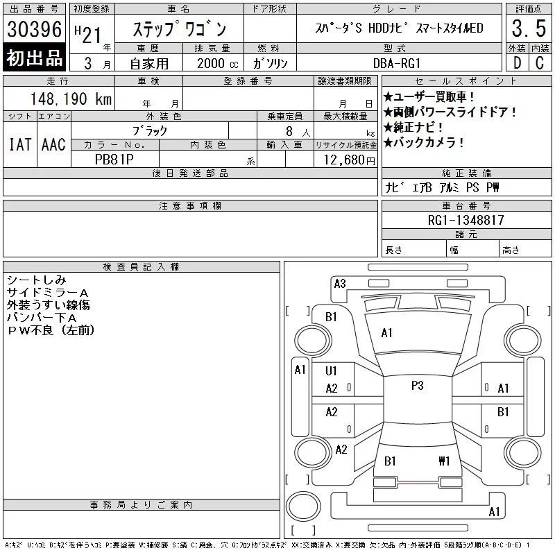 Honda STEP WAGON с аукциона Японии CAA Chubu лот № 30396
