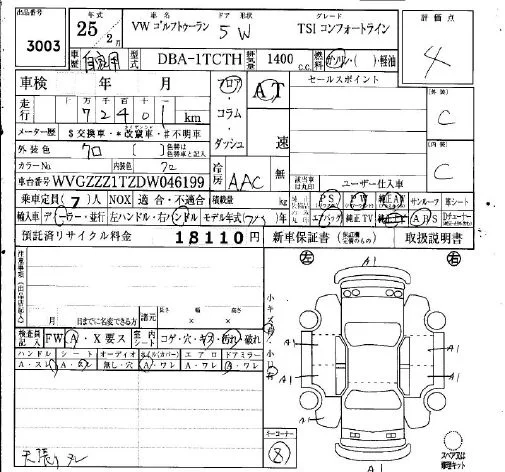 Volkswagen GOLF TOURAN с аукциона Японии IAA Osaka лот № 3003