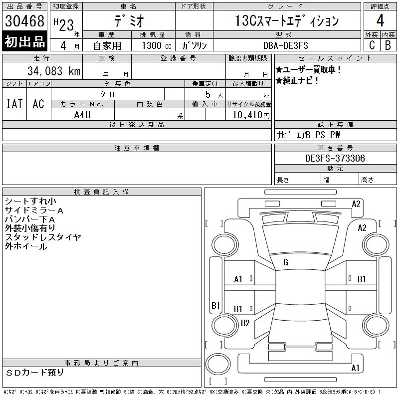 Mazda DEMIO с аукциона Японии CAA Chubu лот № 30468