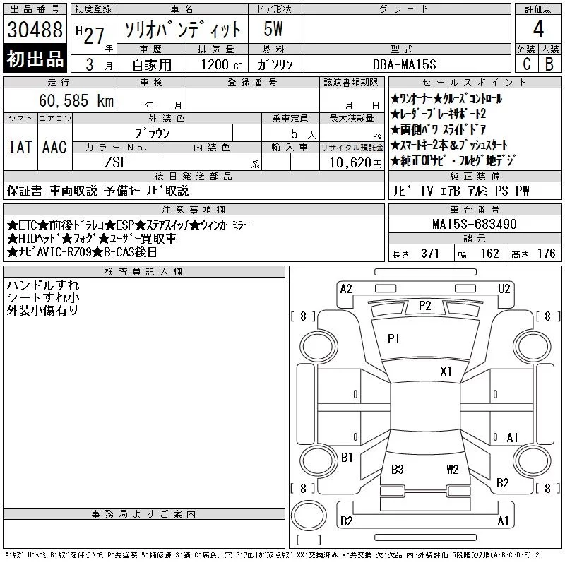 Suzuki SOLIO с аукциона Японии CAA Chubu лот № 30488