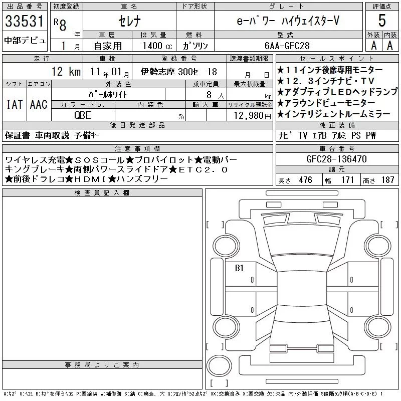 Nissan SERENA с аукциона Японии CAA Chubu лот № 33531