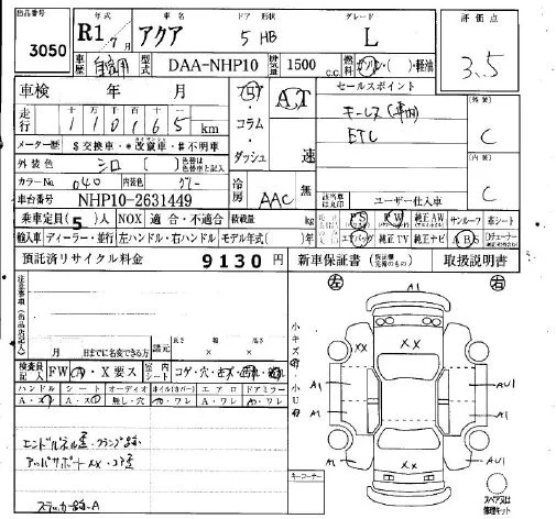 Toyota AQUA с аукциона Японии IAA Osaka лот № 3050