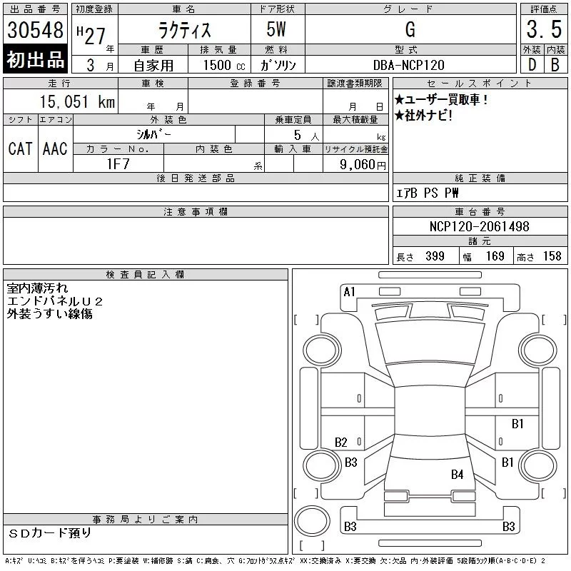 Toyota RACTIS с аукциона Японии CAA Chubu лот № 30548
