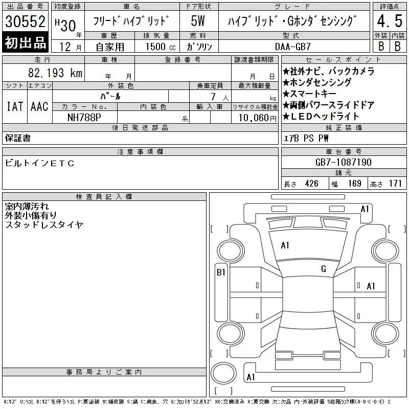 Honda FREED с аукциона Японии CAA Chubu лот № 30552