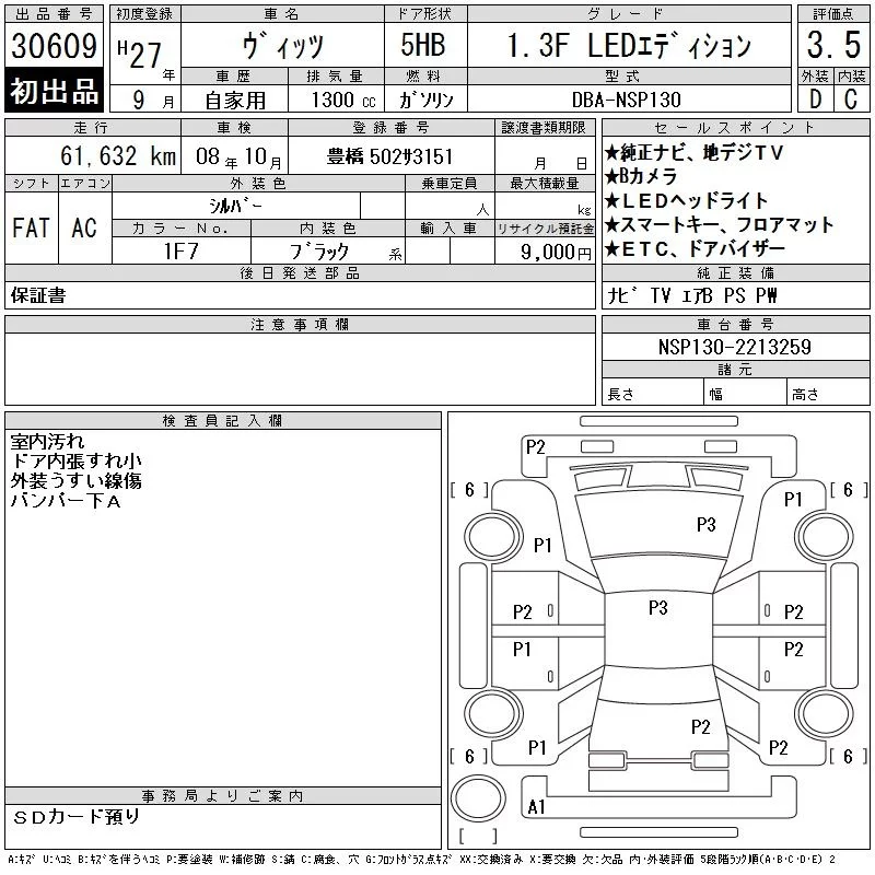 Toyota VITZ с аукциона Японии CAA Chubu лот № 30609