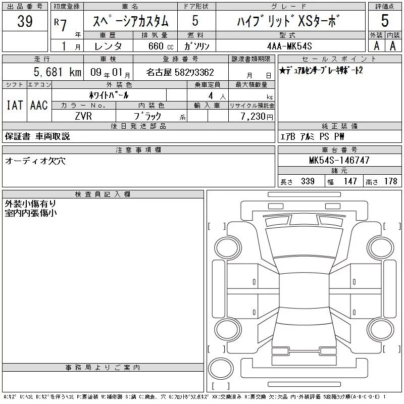 Suzuki SPACIA с аукциона Японии CAA Chubu лот № 39